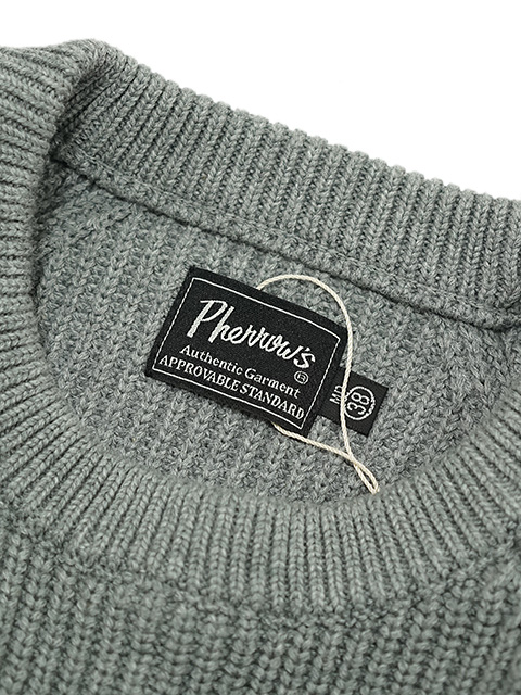 【 Pherrow's(フェローズ) 】 ラグランコットンニット [ RAGLAN COTTON KNIT ][GRAY] [25W-PCK1]
