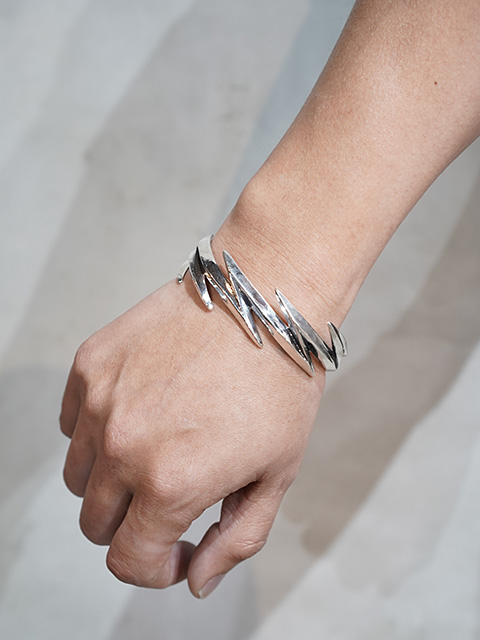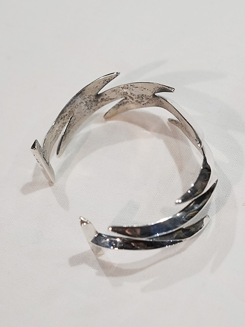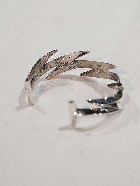 こちらの作品は、”Aaron Anderson(アーロンアンダーソン)”の作品でも特に有名な“ライトニングバングル [ Lightning Bangle ]”。ライトニング(稲妻)をモチーフにしたバングルで、「雷は恵みの雨をもたらすものであり、疾さの象徴である」と考えられ自然への畏敬の象徴とされています。