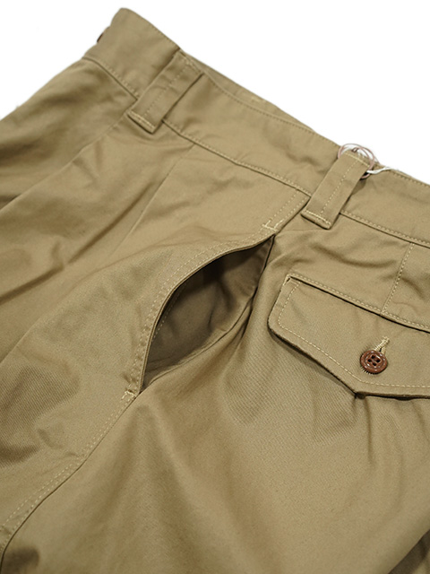 M-52 FRENCH CHINO TROUSERS の特徴でもある内倒しのツータック仕様や内股の切り替えマチも再現、シルエットは現行品より太めに設定しております。