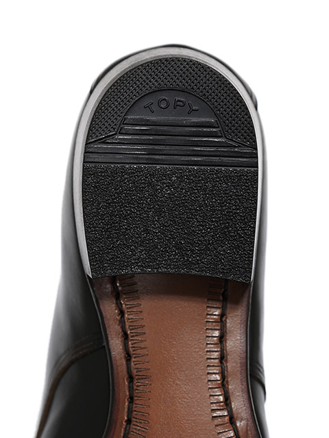 トゥ革ソールにはレザーソールに機能性を考えノンスリップラバー仕様とし、ヒール部分のソールには「TOPY」製ソールを採用。