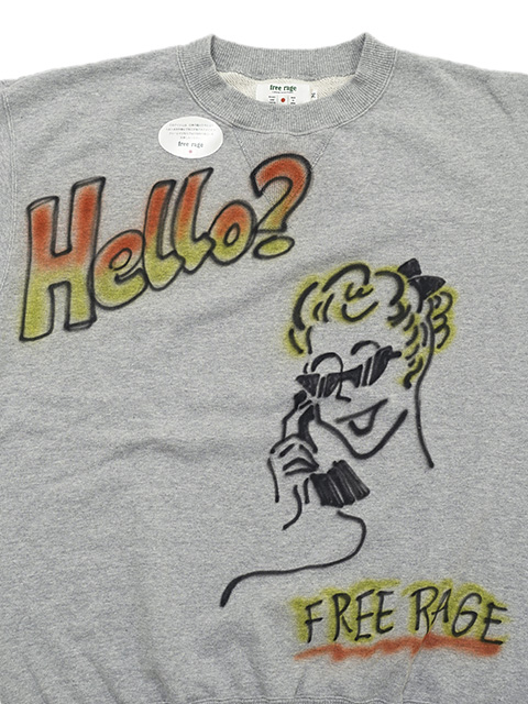 【 FREE RAGE(フリーレイジ) 】 ハンドクラフトクルースウェット [ Hand Brush Paint ] [ H.GRAY ][225CC809B]