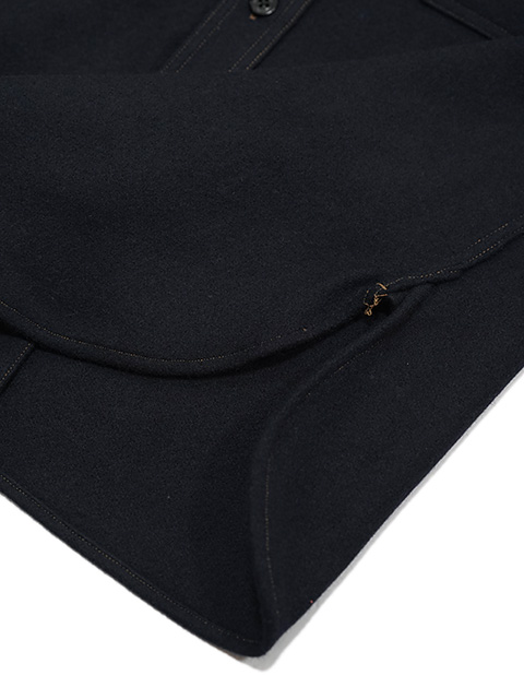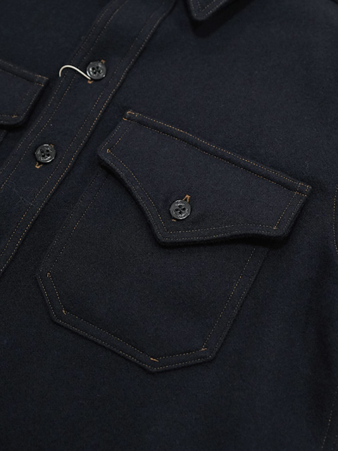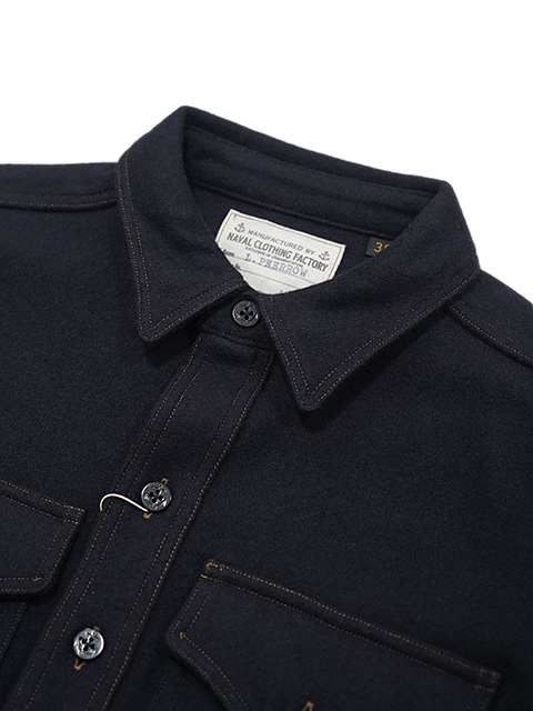 デザインはウールジャケットの定番“C.P.O.ジャケット”。“C.P.O.”とは“Chief Petty Officer”の略で、米国海軍上等兵曹のことを表しており、彼らが甲板上で着用したシャツジャケットの総称です。1930年代に寒冷地帯で勤務するアメリカ海軍兵士のために開発された厚手のウールシャツジャケットで、アメリカンカジュアルウエアの中では定番的な形として知られています。