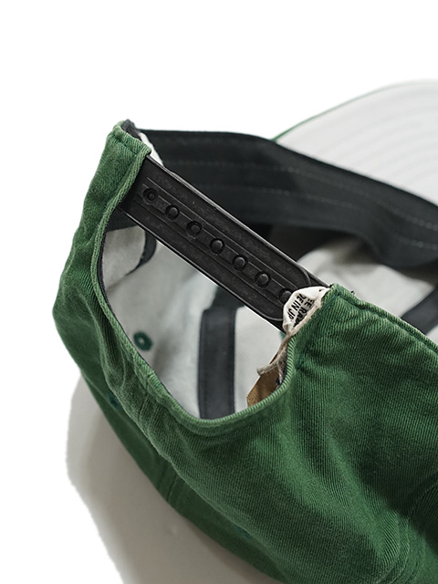 表地はコットン100%のツイル生地を使用。カラーリングのバランスも良く、シンプルで合わせやすいキャップに仕上げています。背面はアジャスターベルトでサイズ調整が可能。6枚ハギのやや浅めな作りで、ユーズド加工を施しているため、色落ち感や生地&縫製のクラッシュなど1点ずつ風合いや表情が異なります。