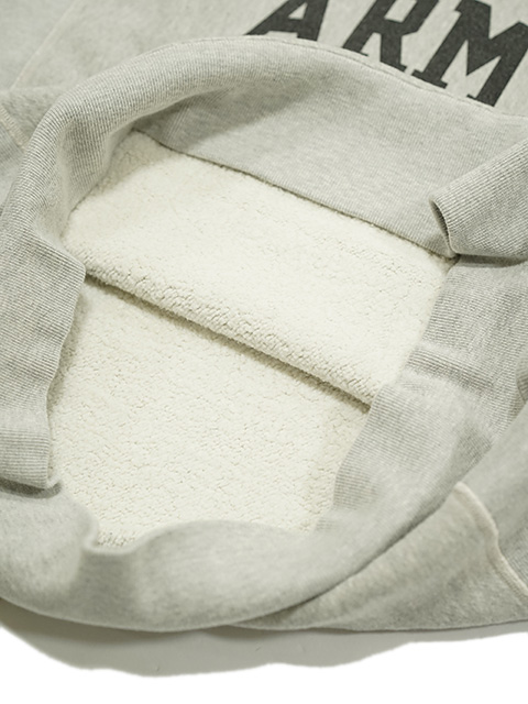素材は「BUZZ RICKSON'S」オリジナルにて製作されたコットン100%のヘビーウエイトなスウェット生地を採用。定番のクルーネックなどの生地よりも厚手でしっかりとした質感で裏起毛により保温性も抜群です。