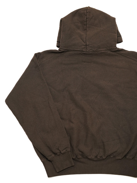 オリジナルの裏起毛スェット素材は"Vintage Wash"をかけ質感を向上させています。裏⽑のループはタオルの様なパイル形状で編み込む事により⽷の間に空気を含ませ快適な着⼼地と保温性が有り吸⽔性から蒸れにくい素材になっております。身頃の生地をリバースウィーブのように横使いにし、縦方向への縮みを軽減しています。