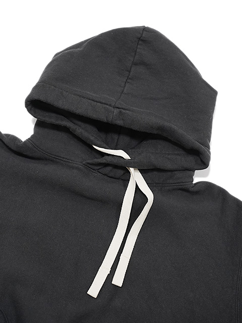 オリジナルの裏起毛スェット素材は"Vintage Wash"をかけ質感を向上させています。裏⽑のループはタオルの様なパイル形状で編み込む事により⽷の間に空気を含ませ快適な着⼼地と保温性が有り吸⽔性から蒸れにくい素材になっております。身頃の生地をリバースウィーブのように横使いにし、縦方向への縮みを軽減しています。