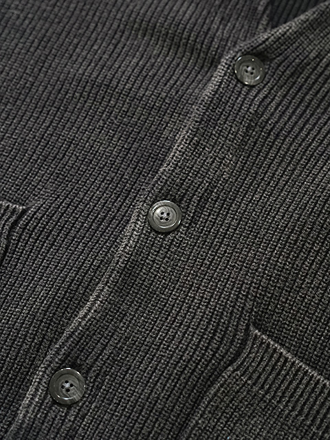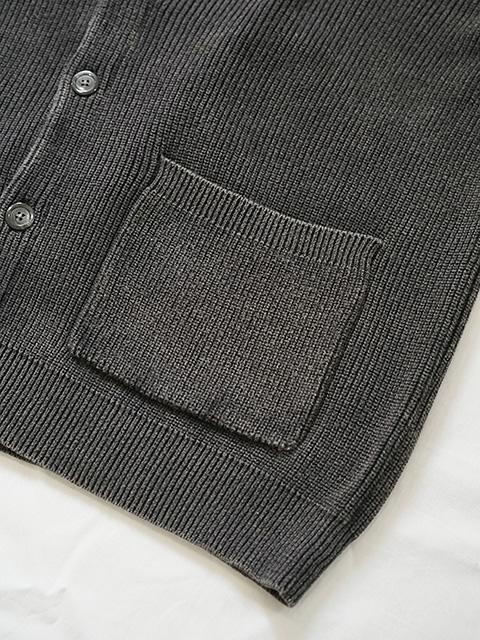 デザインは長年使える飽きの来ないシンプルなカーディガンで、フロントは4つボタン仕様、フロントにポケットが付きます。カーディガンとしては厚手過ぎずサラッと羽織やすいので、カットソーやシャツ等との重ね着、その上からアウターを着たりと長いシーズン活躍するトップスです。