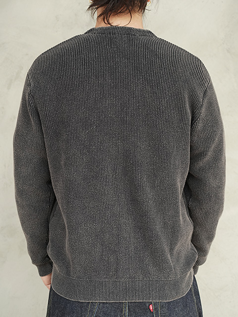 生地はコットン100%のコットンニット生地を採用。ピグメントダイと洗い加工を施した片畦編みサマーニットで、軽量で通気性の良い素材。オールドライクなフェード感が特徴で、加工時間を色によって調整することで、色を落とし過ぎない適度な加工感に仕上げた雰囲気の良いニット素材です。