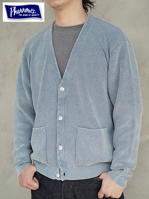 Home | SWEAT > カーディガン【 Pherrow's(フェローズ) 】 サマーニットカーディガン [ Summer Knit Cardigan ] [ SAX ]