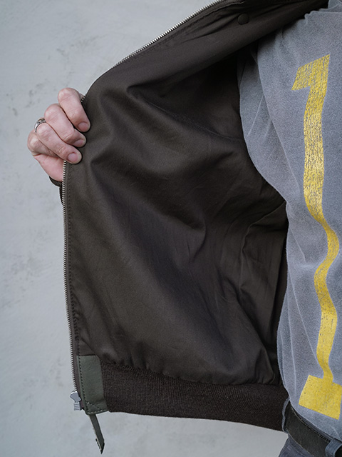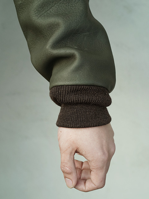 リブはブラウンカラー、ライニングはオリーブカラーのコットンツイルを使用し、定番のA-2では使用していない「Deer Skin」のオリーブを採用し、全体的に渋く大人な印象の"A-2"に仕上がっています。デニムやチノパン、などはもちろん、ウールのスラックスなどで合わせても良いと思います。